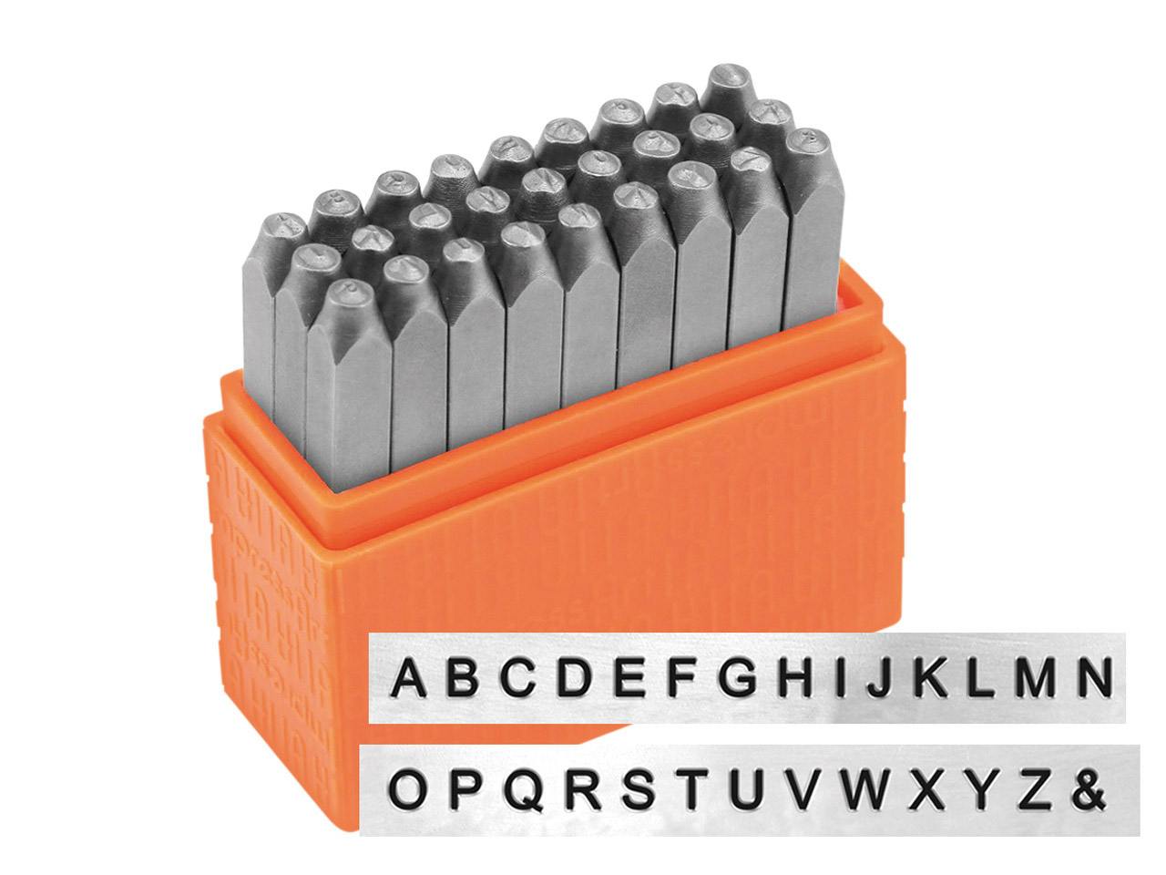 Questi punzoni per lettere di base con font maiuscolo vengono utilizzati per stampare lettere sul metallo. I punzoni vengono venduti in un set da 27 che include 26 lettere del'alfabeto e un pun...