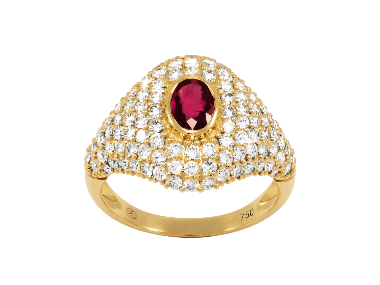 Anello Hypnose 16 Mm, Diamanti 1,45ct E Rubino Ovale 0,52 Ct, Oro Gia Llo 18 Kt, Misura 52 - XLFRA44F