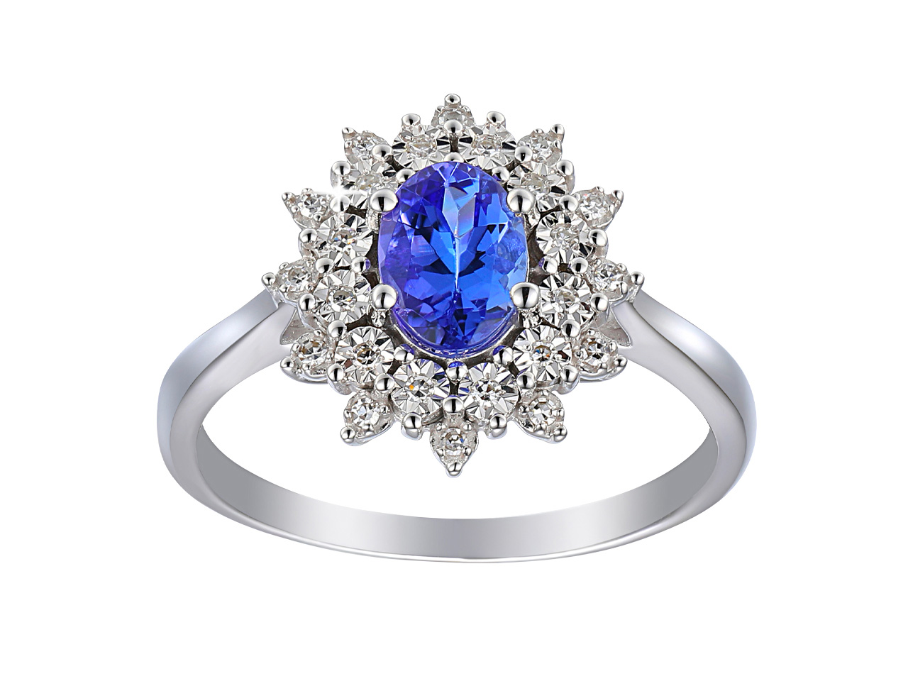• Anello Riviera 12 X 14 Mm, Tanzanite Ovale 0,96 Ct E Diamanti 0,09 Ct,oro Bianco 18 Kt, Misura 56 - Immagine Standard - 1