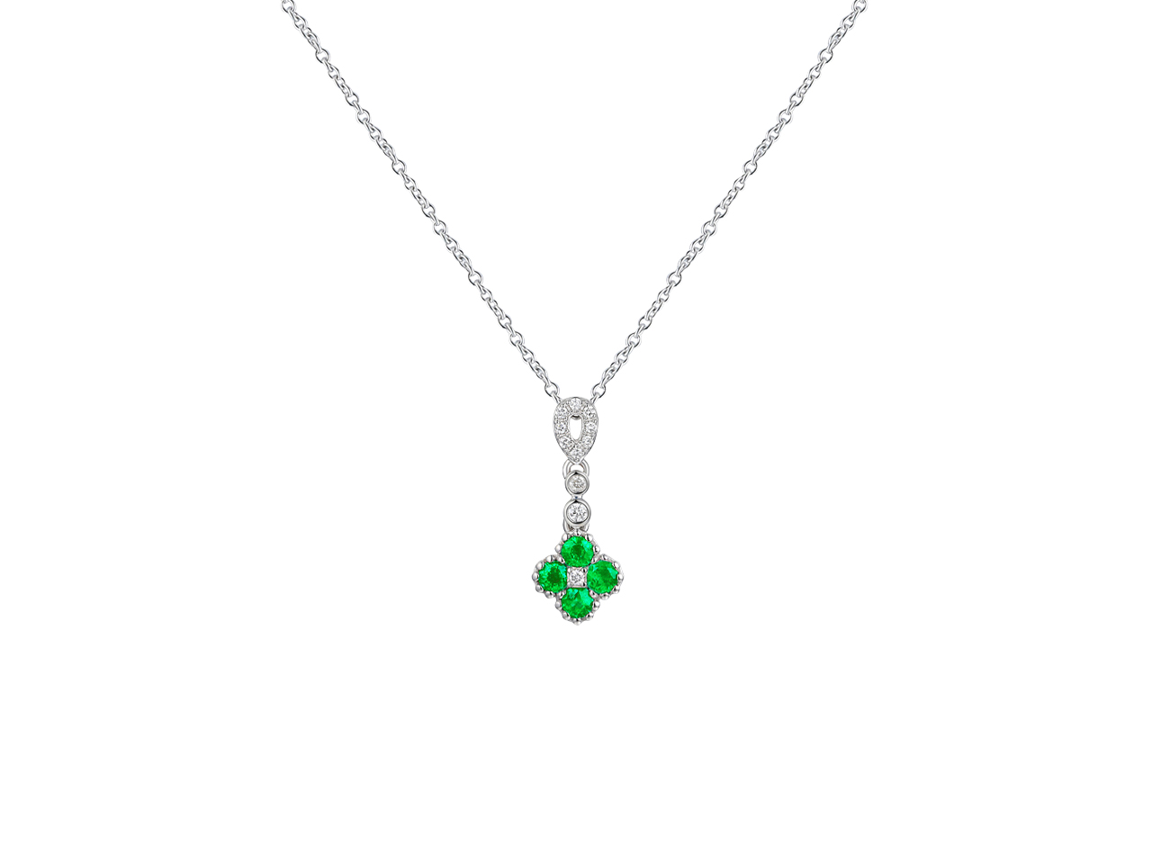 Collana Maglia Forzatina Tonda 1,20mm, Pendente Fiore 8 Mm, Caduta 17 Mm, Smeraldo 0,26 Ct E Diamanti 0, - VMFRA388