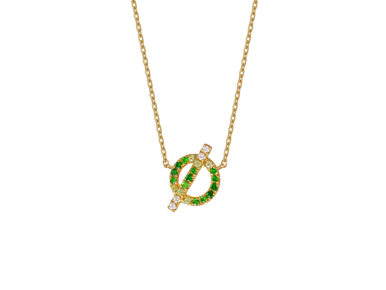 Collana Motivo Cerchio E Barretta 9x 13 Mm, Diamanti 0,04 Ct, Granati Verdi 0,15 Ct, Zaffiri Verdi 0,07 - VLFRA413