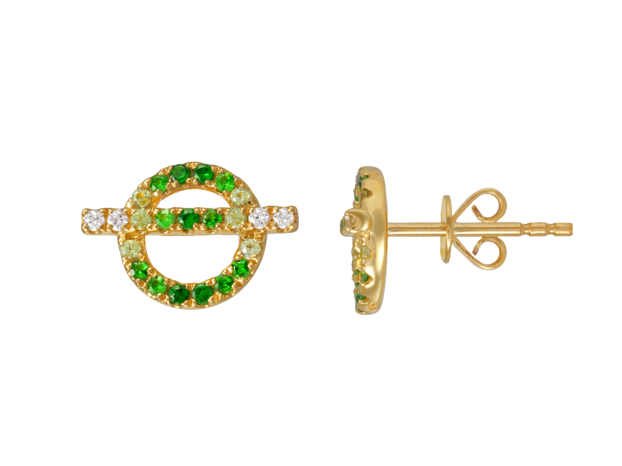 Orecchini Cerchi E Barre 9 X 13 Mm,diamanti 0,08 Ct, Granati Verdi 0, 26 Ct, Zaffiri Verdi 0,12 Ct, Oro G - XLFR9308