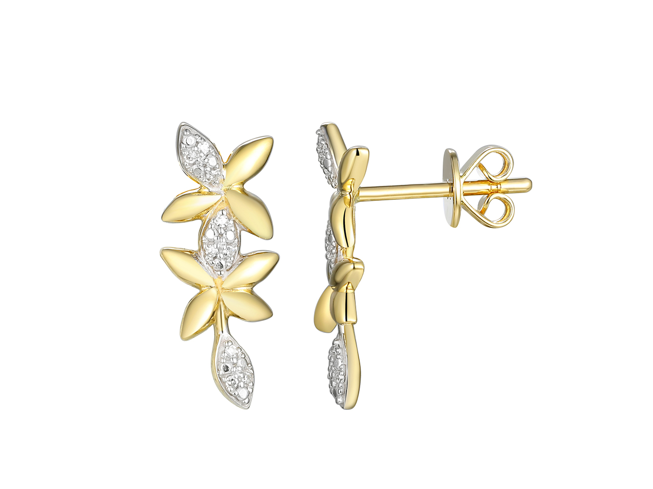 Orecchini Pendenti Fiori 16 X 6 Mm,diamanti 0,03 Ct, Oro Giallo 18 Kt - XLFR9291