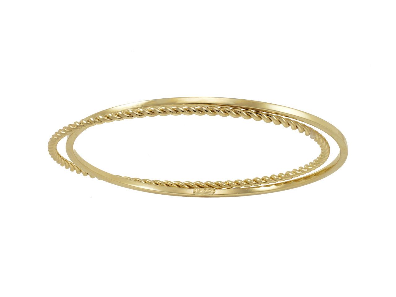 Bracciale Rigido Tubo Quadro Liscioe Filo Tondo Ritorto 2 X 2 Mm, Dia Metro Interno 63 Mm, Oro Giallo 18 - VLFRA401