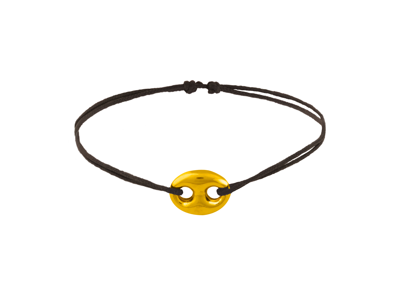 Bracciale In Corda Nera, Chicco Di Caff} Cavo 9,80 X 12 Mm, Oro Giallo 18k - VLAA0449