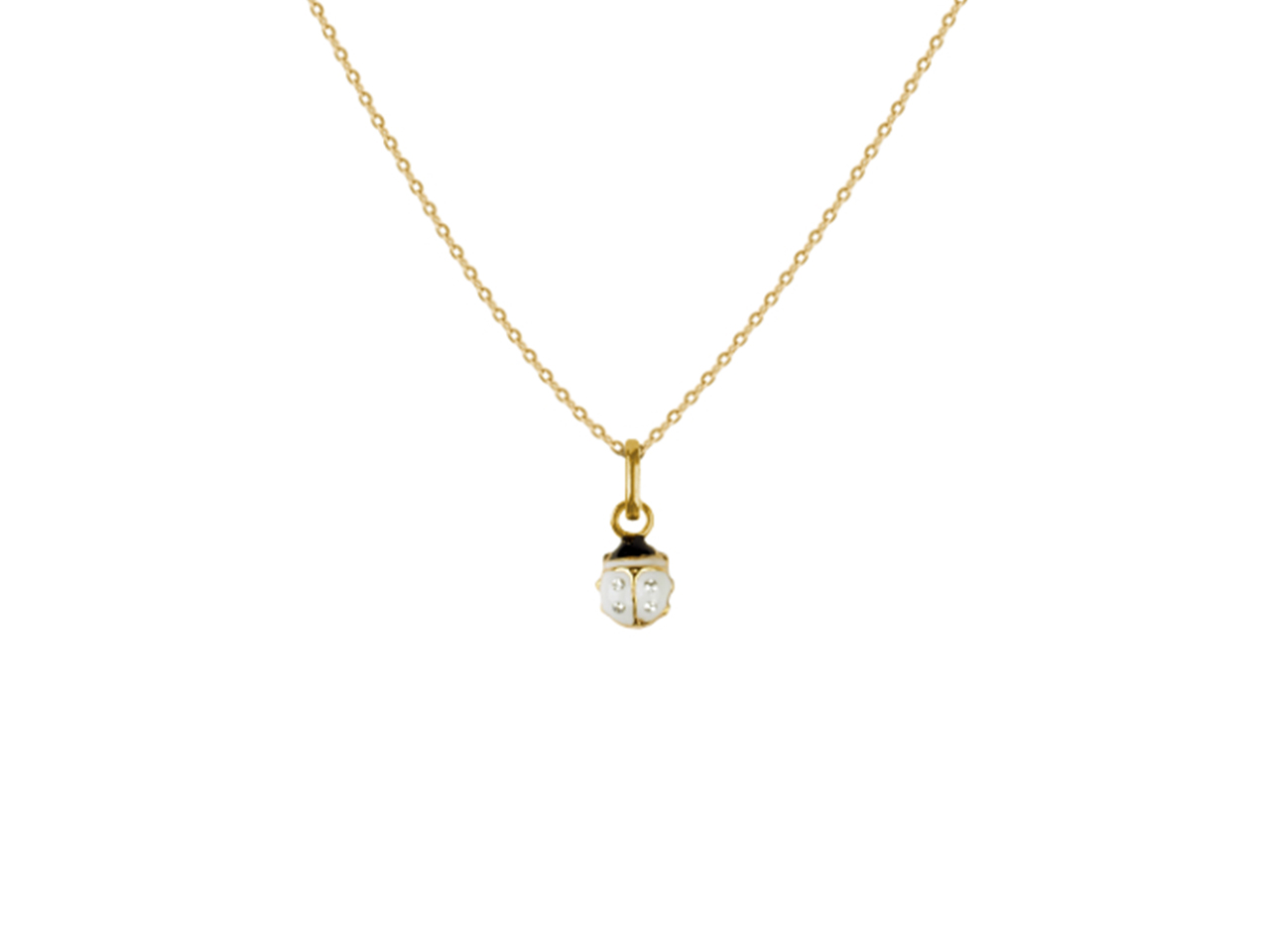 Collana Coccinella 5 Mm, Smalto Bianco E Ossidi Di Zirconio, 36-38 Cm, Oro Giallo 18k - VLFRA274