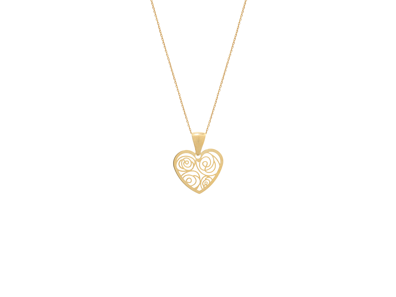 Collana Motivo Cuore Filigrana 14 X16 MM Su Catena Maglia Forzatina R Otonda Massiccia 0,60 Mm, Oro Giall - VIAA0003
