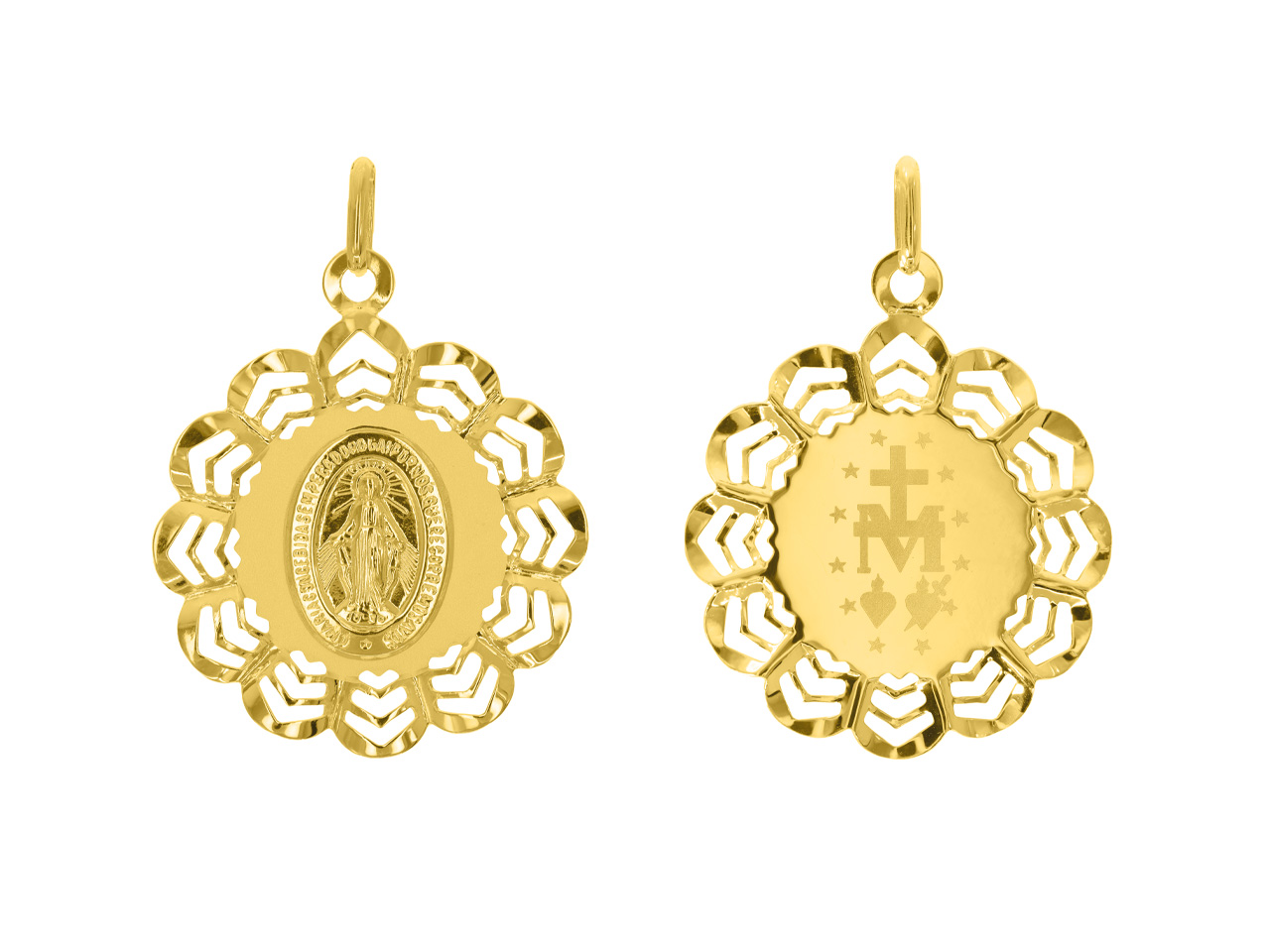 Medaglia Vergine Miracolosa, Bordo Traforato E Fondo Sabbiato, 24 Mm, Oro Giallo 18k - XLAA0398